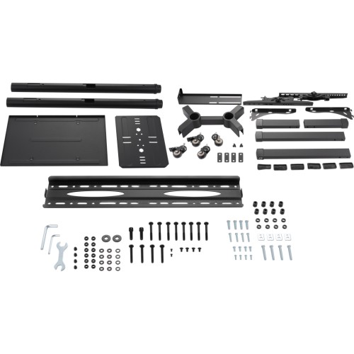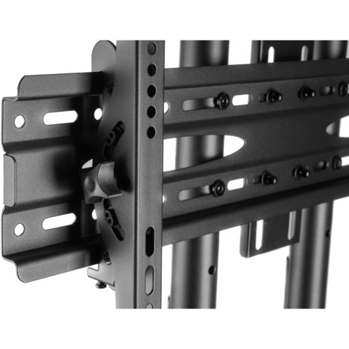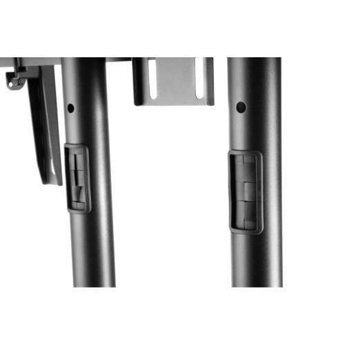 Полиця для телевізорів може витримати вагу до 50 кг, розмір екрану варіюється від 37" до 70". Діапазон нахилу полиці становить +10°~ -10°. Висоту телевізора можна регулювати у трьох положеннях: 1290, 1370 та 1450 мм. Передбачено полицю для камери вагою 5 кг, розмір полиці 298 х 228 мм. Зафіксувати камеру можна на висоті 1643, 1723 та 1803 мм. Навантаження AV-полиці становить 10 кг, а розмір – 485 х 293 мм.