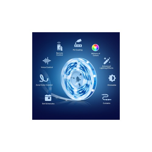 вбудований пульт управління; RGB (вибір кольору); Програма на Android; Програма на iOS; Apple Home; Amazon Alexa; Google Асистент