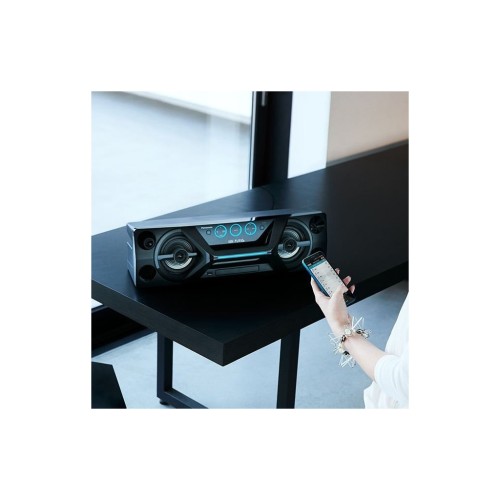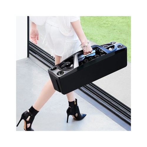 Центральні клавіші управління підсвічуються, лінія вздовж рукоятки також висвітлюється. Ці сині вогні, що світяться на темній поверхні, надають конструкції міського стилю. Горизонтальна схема розташування динаміків забезпечує чітку передачу звуку компактним універсальним пристроєм, що містить усе необхідне; горизонтальне розташування забезпечує стійкість, тому колонку можна безпечно розміщувати практично