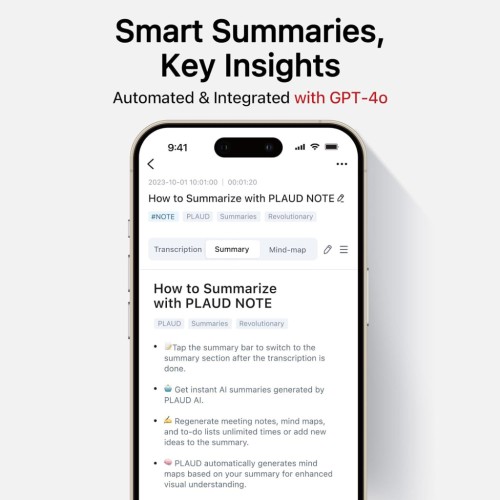 Диктофон Plaud.AI Note Black не просто записує, а кардинально змінює підхід до того, як ви працюєте з аудіо. Алгоритми GPT-4o та Claude 3.5 Sonnet допомагають відтворювати звуки та підвищувати їх чіткість, структурувати текст. Ви отримуєте 300 хвилин розшифровки безплатно кожного місяця. Не важливо, чи ви перебуваєте в галасливому офісі, на конференції чи записуєте багатоголосі обговорення — штучний інтелект Plaud.AI Note Black точно зрозуміє кожне слово 112 мовами. Підготуйтеся до покращення роботи з аудіо — з Plaud.AI Note Silver жодна розмова не залишиться без детальної транскрипції та аналізу.