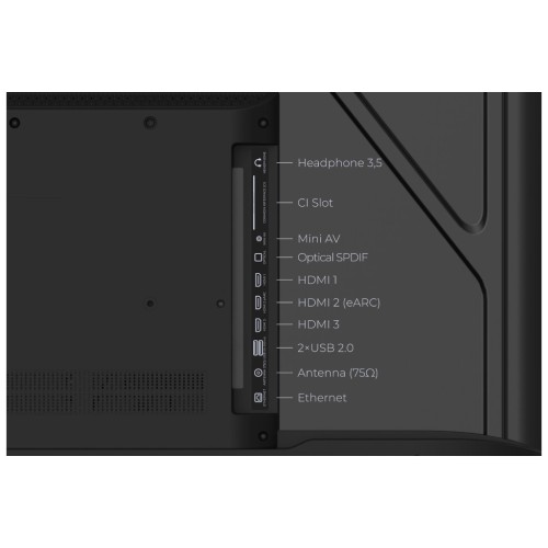 3 x HDMI; Антенний; 1 x RJ-45; 2 x USB; Аудіовихід; 1 x Mini AV IN; 1x Toslink