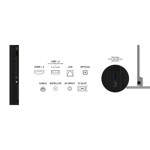 4 x HDMI; 1 x USB; 1 x RJ-45; CI; 1 x USB 3.0