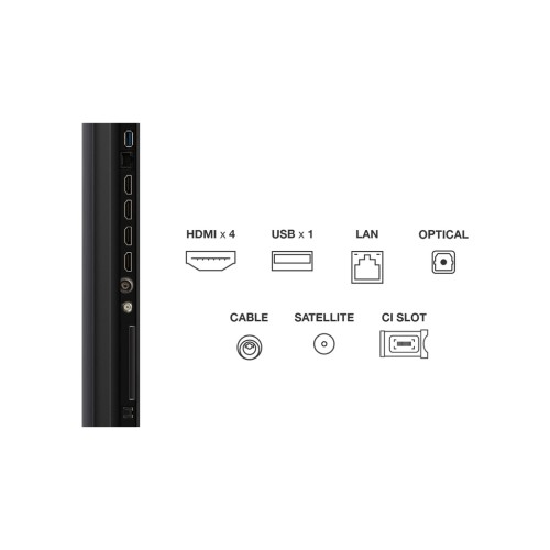 4 x HDMI; Антенний; 1 x оптичний аудіо; 1 x RJ-45; CI; USB