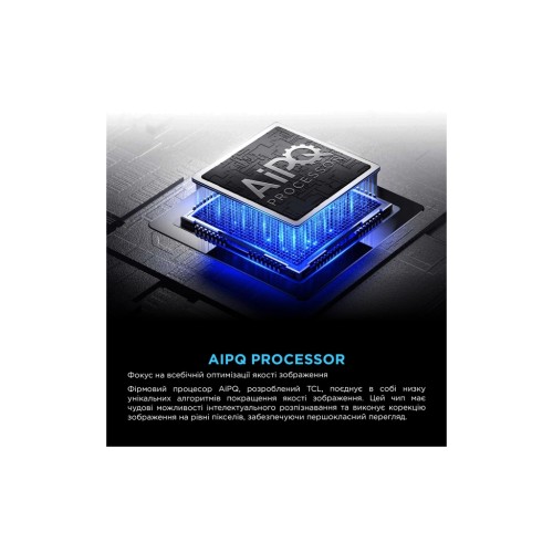 Процесор AiPQ Pro оптимізує зображення та звук у реальному часі, адаптуючи їх до контенту та умов перегляду. Ця технологія аналізує кожен кадр, покращуючи кольори, контрастність і чіткість, щоб ви могли насолоджуватися ідеальною картинкою. Крім того, AiPQ Pro підтримує інтелектуальне масштабування, що робить контент із нижчою роздільною здатністю більш деталізованим.