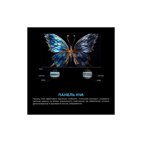 Екран HVA (Horizontal Vertical Alignment) у телевізорах TCL P8K забезпечує чудові кути огляду без втрати якості зображення. Це означає, що кольори та контрастність залишаються стабільними, навіть якщо ви дивитеся телевізор збоку. Така технологія ідеально підходить для великих компаній, коли кожен у кімнаті може насолоджуватися однаково якісним зображенням.