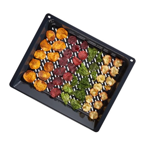 Його конструкція забезпечує рівномірний розподіл тепла, що сприяє більш рівномірному приготуванню їжі. Деко підходить для використання в режимі Air Fry, що дає змогу готувати страви з мінімальною кількістю олії.