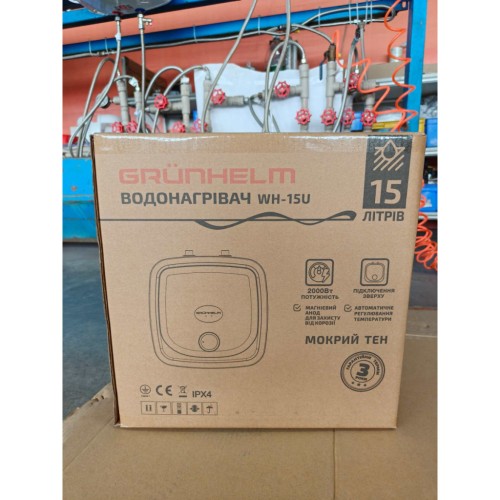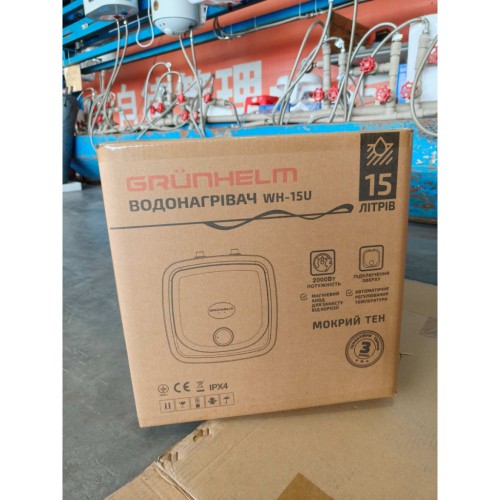 Водонагрівач WH-15U, 15л. 1500 Вт Grunhelm (Бойлер) - Електричний накопичувальний водонагрівач призначений для нагрівання водопровідної води в побутових умовах і здатний підготувати велику кількість гарячої води та підтримувати задану температуру автоматично. Використовується для забезпечення гарячою водою заміських будинків, котеджів, бань та інших побутових приміщень, в яких немає центрального гарячого водопостачання, а також як резерв у міських квартирах на період відключення гарячої води на профілактику.