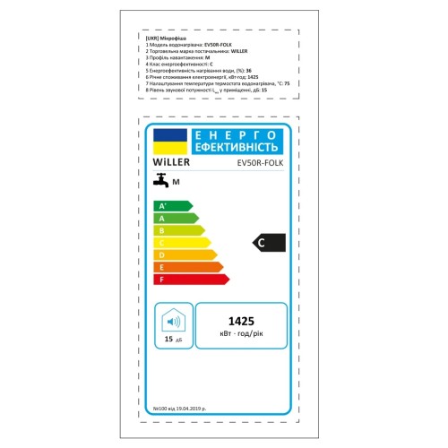 Надійний накопичувальний електричний водонагрівач WILLER EV50R-FOLK циліндричної форми об'ємом 50 літрів. Оснащений занурювальним (мокрим) нагрівальним елементом потужністю 1,5 кВт. Внутрішній бак, виготовлений зі сталі, покритої титанокварцевою емаллю, і захисний магнієвий анод забезпечують тривалий термін експлуатації. Сфера застосування - нагрівання води для побутових цілей, для душу і ванни. Для використання в будинку, квартирі, на дачі.