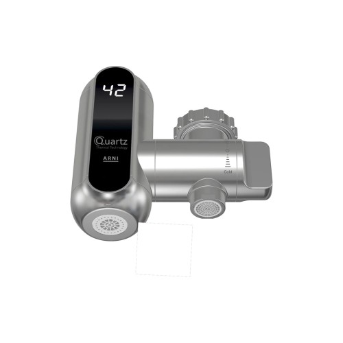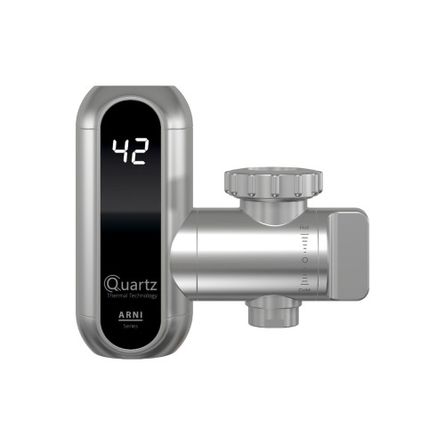 Модель Quartz Arni 3500 вирізняється своїми надзвичайно компактними габаритами 13 x 14.5 x 6.5 см та стильним сріблястим кольором. Попри малу вагу (0.7 кг), пристрій є повноцінним водонагрівачем конструкції "із краном". Для зручності контролю він оснащений яскравим дисплеєм, а управління температурою відбувається механічно, через відкритий регулятор на корпусі.
