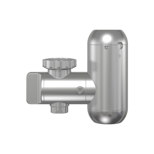 Оцініть компактність та потужність проточного водонагрівача Quartz Arni 3500 (модель 2025 року). Цей пристрій призначений для кухні та пропонує унікальний спосіб отримання гарячої води: він встановлюється "над мийкою" (вертикальна позиція) та монтується безпосередньо на ваш наявний змішувач, забезпечуючи миттєвий нагрів одним дотиком.