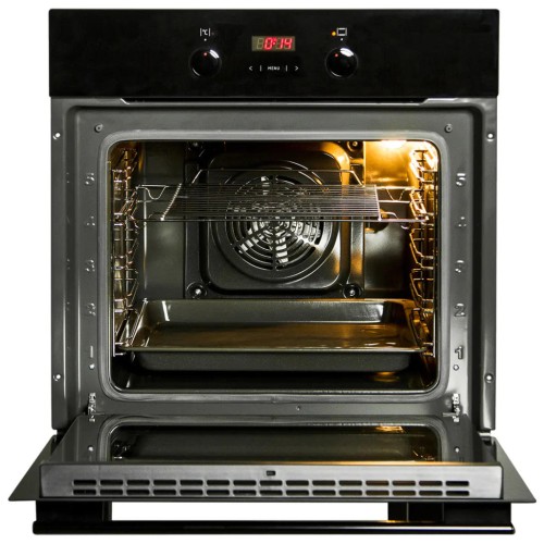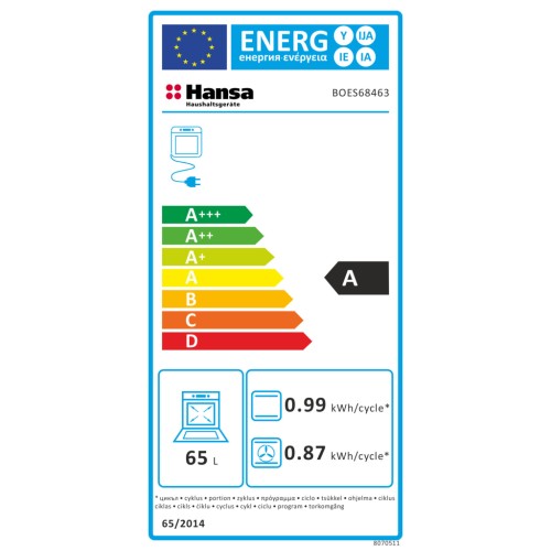 Hansa BOES68463 – електрична духова шафа об'ємом 65 літрів із класичним чорним дизайном. Оснащена 8 режимами приготування, швидким розігрівом на 2900 Вт і системою очищення парою. Має зручне сенсорно-механічне керування, телескопічні напрямні та галогенне підсвічування.