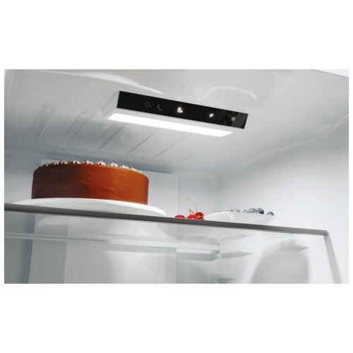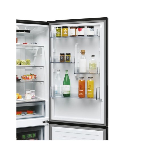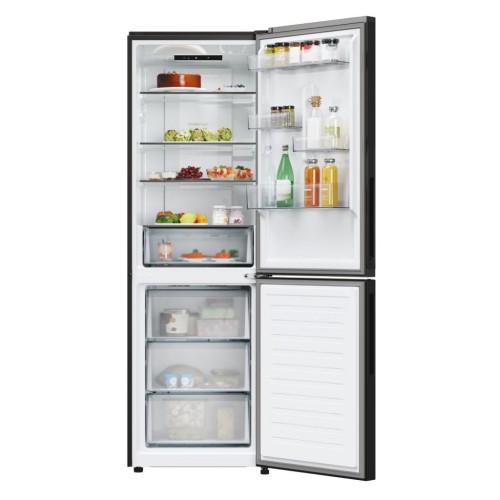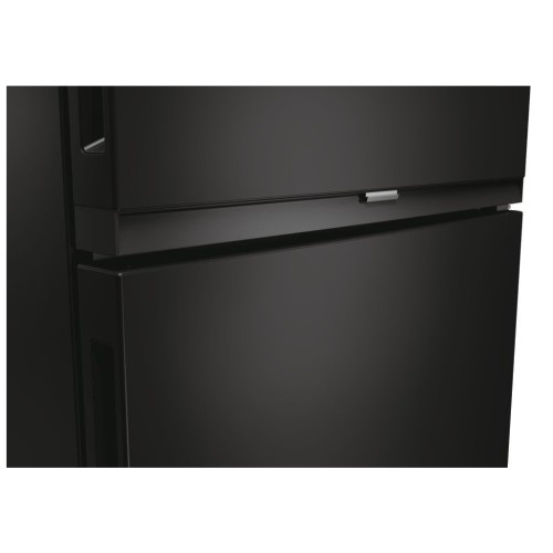 Стильний чорний корпус із металевими дверцятами, інтегрованими ручками та прихованими петлями гармонійно поєднує естетику та функціональність, вписуючись у будь-який інтер’єр. З додаткових функцій відзначимо внутрішнє освітлення, вентилятор, що підтримує стабільну температуру, та можливість регулювання темпаратурних режимів окремо для холодильного та морозильного відділень.
