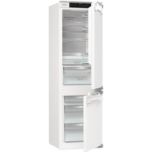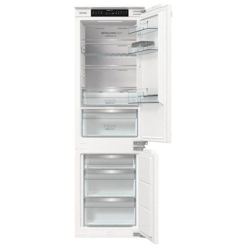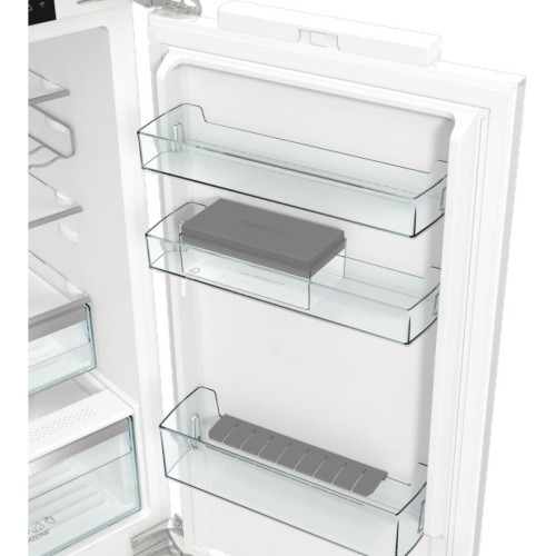 Вбудований холодильник Gorenje NRKI517E82WF поєднує холодильну та морозильну камери в корпусі висотою 177 см. Загальний корисний об’єм становить 244 л, морозильне відділення розташоване знизу. Система NoFrost Plus, адаптивне охолодження AdaptTech та зона свіжості підтримують стабільний мікроклімат для різних типів продуктів. Передбачене Wi-Fi керування та окремий світлодіодний дисплей.