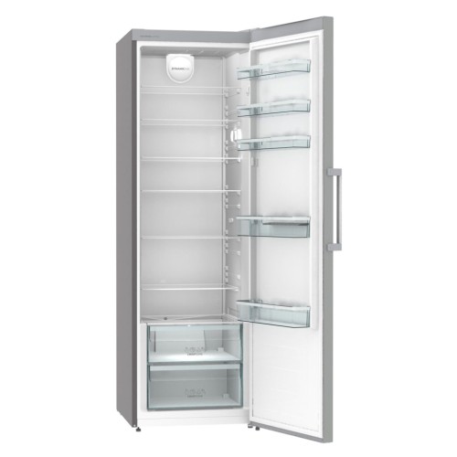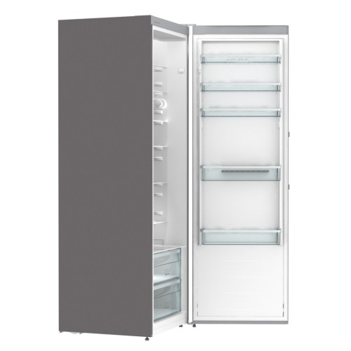 Цей однокамерний холодильник пропонує вражаючий загальний об'єм у 400 літрів, з корисним об'ємом холодильної камери 398 літрів. Це дозволяє зберігати велику кількість продуктів, чого вистачає навіть на велику сім'ю. Усередині розташовані сім полиць, що дозволяють зручно розмістити всі необхідні продукти. Полиця для пляшок, вбудована в двері, забезпечує зручний доступ до напоїв, а дверні корзини надають додатковий простір для інгредієнтів або продуктів повсякденного вжитку.
