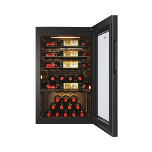 Вбудоване внутрішнє освітлення та вентилятор створюють комфортні умови для візуальної оцінки та контролю за станом вина. Звуковий сигнал нагадає про відчинені двері, запобігаючи небажаним втратам прохолоди і зберігаючи настільки важливу стабільність температури.