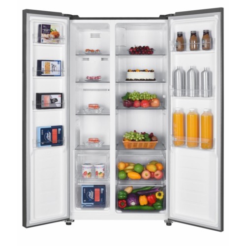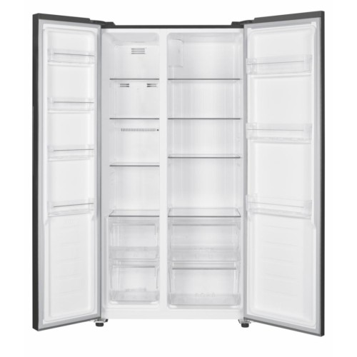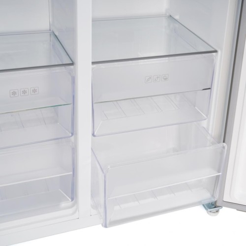 Цей двокамерний холодильник типу side-by-side має загальний об'єм 442 літри, що дозволяє комфортно розмістити велику кількість продуктів. Холодильна камера об’ємом 291 л оснащена 8 полицями та 7 дверними корзинами, що робить її ідеальною для організації найрізноманітніших продуктів і напоїв. Для любителів вин передбачена спеціальна полиця для пляшок у дверях. Морозильна ж камера здатна вмістити 151 літр вашого улюбленого морозива, зберігаючи його у чотирьох секціях.