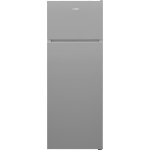 Холодильник Indesit I55T1612S — двокамерний пристрій сріблястого кольору з верхньою морозильною камерою, загальним об’ємом 250 л (204 л холодильна, 46 л морозильна). Клас енергоспоживання А++ з річним використанням 184 кВт·год, статична система охолодження та механічне управління. Розмір 160.6 × 54 × 57.4 см, рівень шуму 40 дБ, автономне збереження холоду до 16 годин. Двері перевешуються, полиці з загартованого скла, бокс свіжості та лоток для льоду. Кліматичний клас SN-ST для стабільної роботи в помірному кліматі.