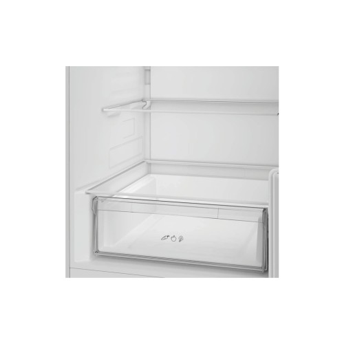 Його загальний об'єм становить 355 л, що дозволяє розмістити безліч продуктів та напоїв. З них 249 л припадає на холодильну камеру, оснащену міцними полицями із загартованого скла, які легко витримують великі ваги. П'ять полиць у холодильному відділенні й контейнери для овочів забезпечують оптимізацію простору, а чотири дверні корзини дозволяють зручно зберігати дрібні продукти та напої. Внутрішній простір добре освітлений LED-освітленням, що додає зручності в щоденному користуванні.