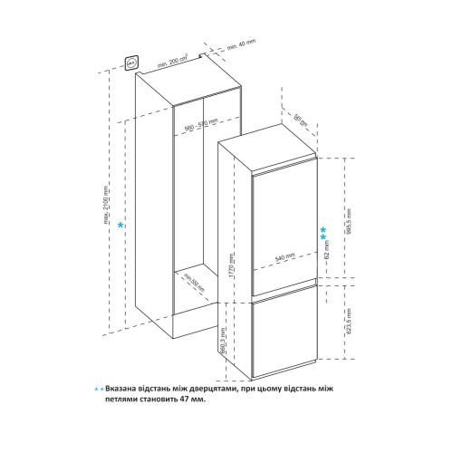 полиця для яєць; сигналізація двері; багатопотокове охолодження; звуковий сигнал; перестановка дверцят