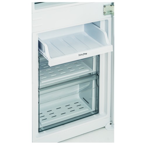 Реалізовано завдяки зручним направляючим, які розміщені на дверцятах холодильника, що дає змогу автоматично плавно зміщувати внутрішній елемент фасаду під час кожного відкривання дверцят.