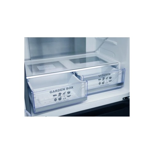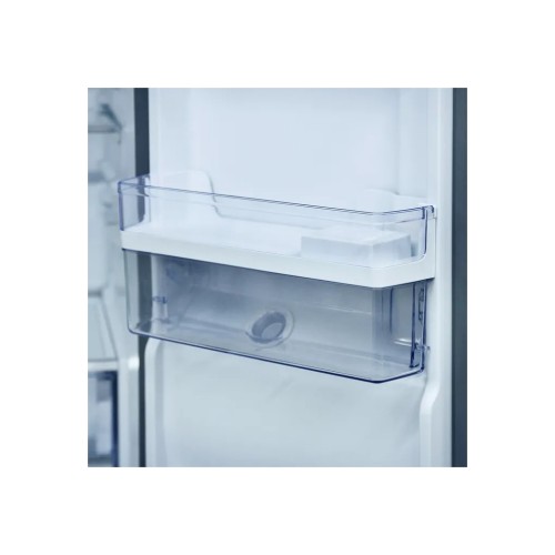 Сучасне LED-підсвічування забезпечує повне освітлення простору всередині, запобігаючи надмірному засліпленню. Таким чином, продукти добре видно, а використання електроенергії значно зменшується. У холодильнику передбачено полицю для пляшок, контейнер для овочів, льодогенератор та диспенсер, що спрощує зберігання різних продуктів.