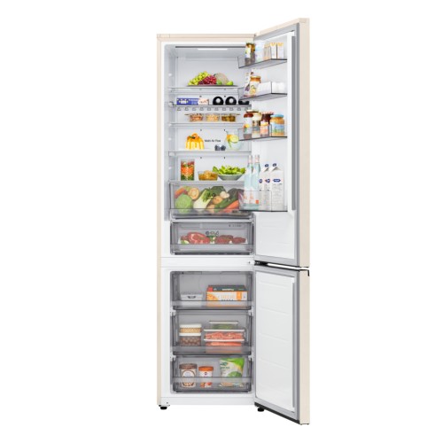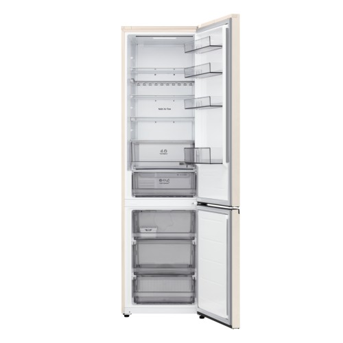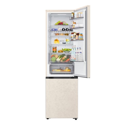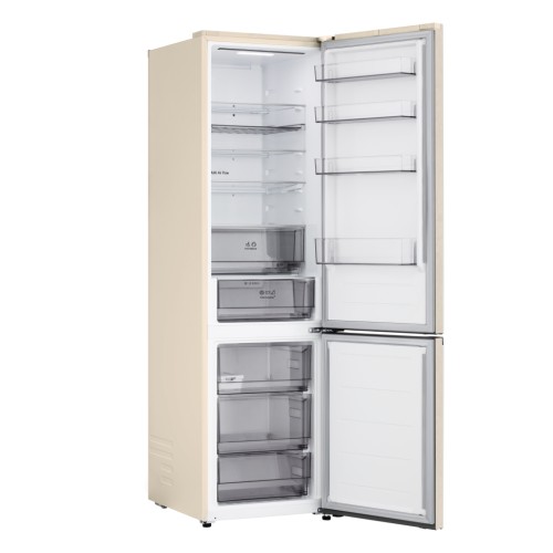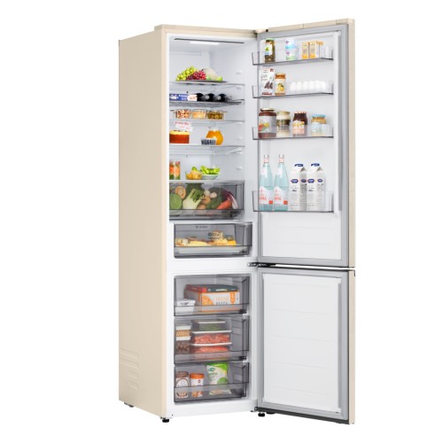 Холодильник LG GC-B509EETM з нижньою морозильною камерою має загальний корисний об'єм 375 л (262 л холодильне відділення + 113 л морозильне). Пристрій оснащений інверторним компресором, системою Total No Frost, технологією DoorCooling+ та зовнішнім LED-дисплеєм. Зони Fresh Balancer і Fresh Converter дозволяють точно регулювати вологість і температуру для різних продуктів. Річне споживання енергії становить 263 кВт·год (клас E), рівень шуму - 35 дБ. Гарантія - 1 рік повна + 10 років на компресор.