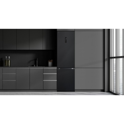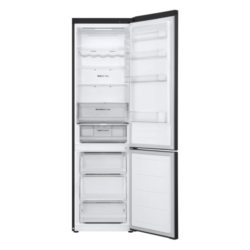 Холодильник з нижньою морозильною камерою GW–B509FXFW — стильний та енергоефективний вибір для сучасної кухні. Має загальний корисний об’єм 384 л (холодильне відділення — 277 л, морозильне — 107 л), клас енергоефективності A++ і інверторний компресор для стабільної та тихої роботи. Технологія Total No Frost забезпечує рівномірне охолодження без потреби розморожування.