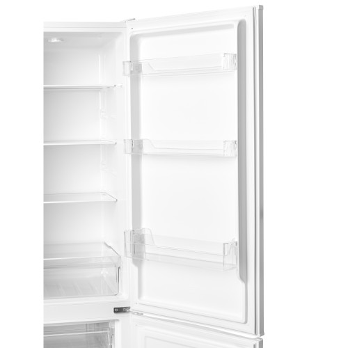 Низький рівень шуму у 42 дБ гарантує роботу холодильника без зайвих звуків, що не заважатимуть вашому домашньому затишку. Стильний білий колір і лаконічний дизайн із полицею для пляшок у дверях додають привабливості, роблячи його стильним акцентом вашої кухні.