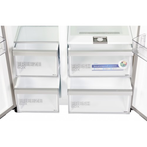 Відкрийте для себе бездоганне поєднання технологій і стилю з холодильником Midea MDRS791MIE28. Цей розкішний side-by-side холодильник у чорному кольорі стане справжнім акцентом у вашому інтер'єрі, надаючи йому вишуканості та сучасності. У ньому технологічність зустрічається з естетикою, створюючи ідеальний центр кухонного простору, що притягує погляди.