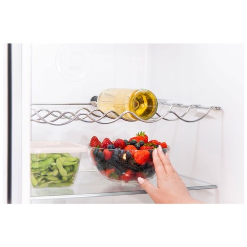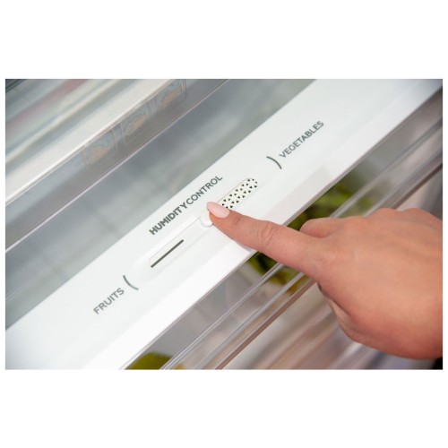 Внутрішнє освітлення Sky LED забезпечує приємне та м'яке освітлення холодильної камери, яке рівномірно розподіляється по всій площі, дозволяючи вам без зусиль знайти будь-який продукт, навіть у відділенні для овочів і фруктів. Завдяки грязевідштовхуючому покриттю, корпус холодильника залишається бездоганно чистим і стійким до відбитків пальців.