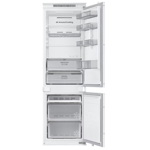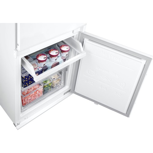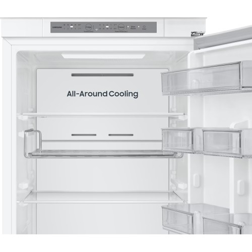 Вбудований холодильник SAMSUNG BRB80F30A1S0UA — це досконале поєднання інноваційних технологій та елегантного дизайну, що стане неперевершеним доповненням будь-якої кухні. Завдяки своїм просторим внутрішнім об'ємам, які сумарно становлять 313 літрів, цей двокамерний холодильник забезпечує достатньо місця для зберігання всіх ваших улюблених продуктів. Холодильне відділення з корисним об'ємом 222 літри оснащене чотирма полицями з загартованого скла та сімома дверними корзинами, що гарантує бездоганну організацію продуктів, незалежно від їхнього типу та розмірів. Крім того, практичний контейнер для овочів і полиця для пляшок на дверях забезпечують додаткову зручність і комфорт.