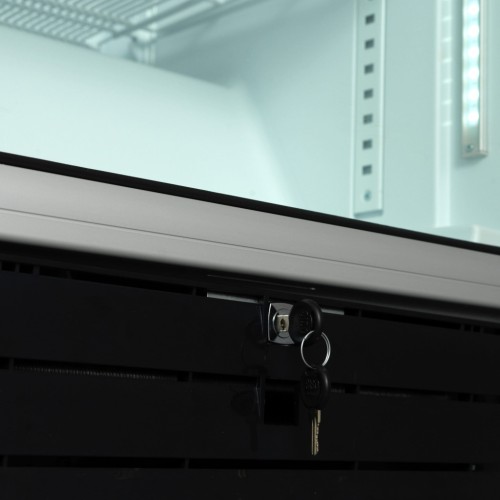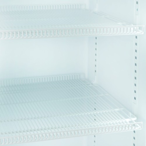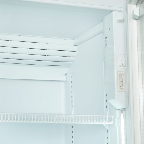 Цей холодильник-шафа-вітрина забезпечує чудову експозицію товарів завдяки своїм скляним дверям та вертикальному світлодіодному підсвічуванню. Це гарантує постійне привертання уваги до вашої продукції, що сприяє збільшенню продажів. З корисним об'ємом холодильної камери 455 літрів ви з легкістю розмістите всі необхідні продукти на п'яти регульованих полицях, що дозволяє оптимізувати простір у холодильнику відповідно до ваших потреб.