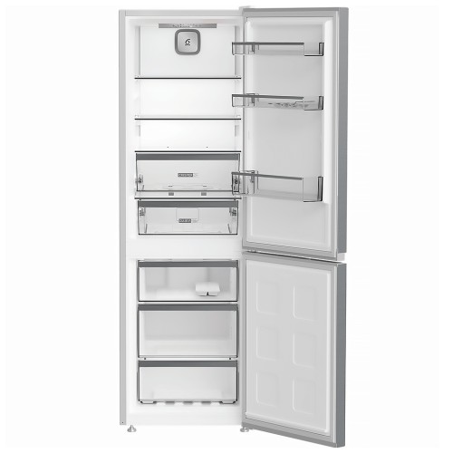 Холодильник оснащено системою Dual No Frost, яка повністю виключає утворення інею в обох відділеннях. Окремі контури циркуляції повітря забезпечують рівномірне охолодження, оптимальну вологість і запобігають змішуванню запахів між камерами.