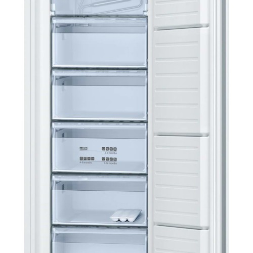 BoschSerie 4 GSV24VWE0N – це поєднання енергоефективності, тихої роботи та продуманого внутрішнього простору, призначене для комфортного зберігання запасів продуктів у будь-яких умовах.
