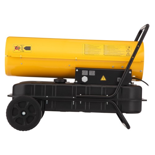 • Переносне джерело тепла, теплова гармата, має термостат із зручним вимикачем контролю температури, а також датчик полум'я, що відключає подачу живлення у разі нестачі масла та світловий індикатор несправності, що впливає на безпеку користувачів.