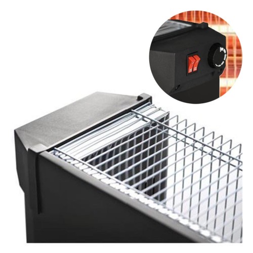 Керування здійснюється за допомогою зручних механічних кнопок та регулятора температури, розташованих на бічній панелі. Це дозволяє гнучко налаштовувати режими обігріву під ваші особисті потреби.