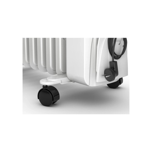 Радіатор працює безшумно, не завдаючи дискомфорту користувачам. Завдяки маневреним колесам та ергономічній ручці прилад максимально мобільний – переміщаючи, можна нагріти велику площу. Передбачений гачок для намотування кабелю у неробочий час. Масляний радіатор абсолютно безпечний – усі «гарячі» елементи приховані, а сам корпус нагрівається лише до 60 градусів. Додатково є функція Anti ice для підтримки мінімальної температури у приміщенні проти промерзання стін.