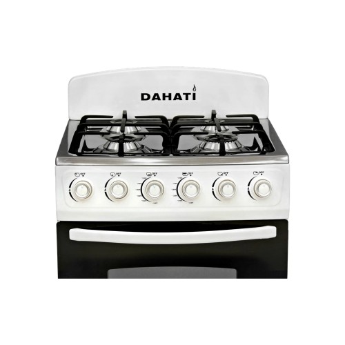 Плита газова DAHATI 2000-64X має газову робочу поверхню та газову духовку. Робоча варильна поверхня – нержавіюча сталь. Плита виконана в білому емальованому корпусі – класичний колір та легкий догляд для Вашої кухні. Плита оснащена п'єзорозпалом робочої поверхні та духовки. Духовка має 2 пальники - нижній стандартний плюс верхній пальник (гриль). Газова плита DAHATI 2000-64Х оснащена чавунними ґратами – довговічними та практичними. На передній панелі розташовані перемикачі регулювання потужності полум'я пальників робочої поверхні та духовки.