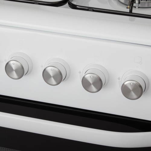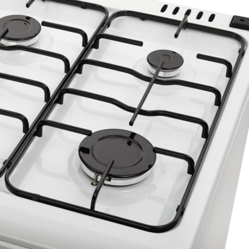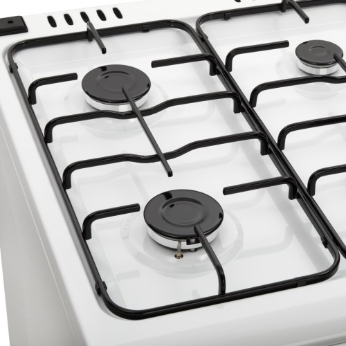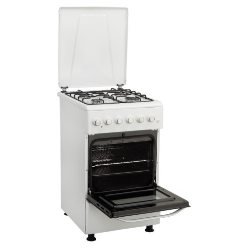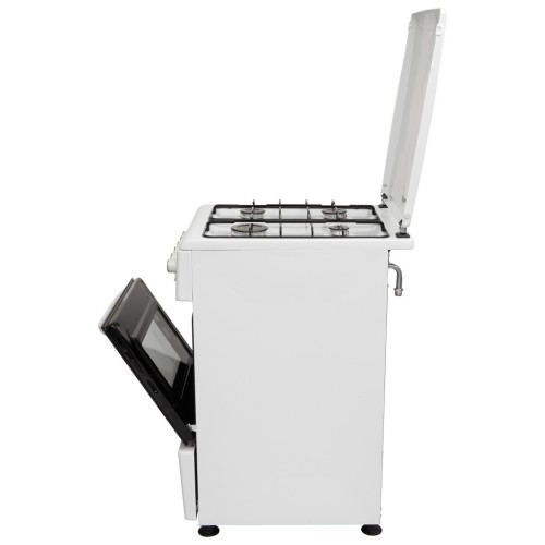 ELEYUS COMBO 5007 – кухонна плита з газовою варильною поверхнею та електричною духовкою об'ємом 52 л. Має захисну металеву кришку та регульовані ніжки, щоб змінити висоту плити та надійно встановити її.