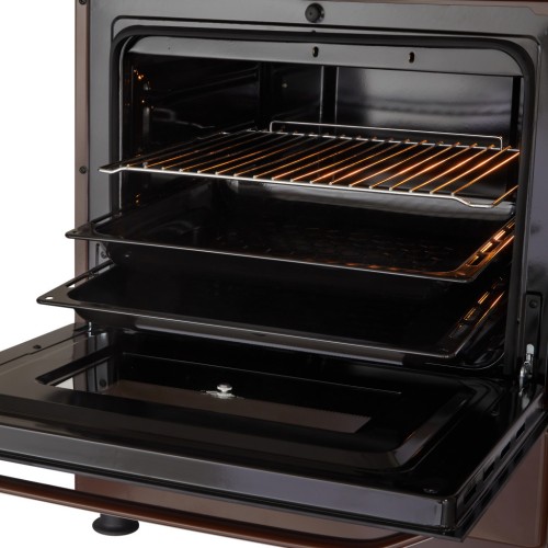ELEYUS FARO 6001 – кухонна плита з газовою варильною поверхнею та газовою духовою шафою об’ємом 50 л. Металева кришка захищає стіну від забруднень під час готування, а регульовані ніжки дозволяють змінити висоту плити та надійно її встановити.