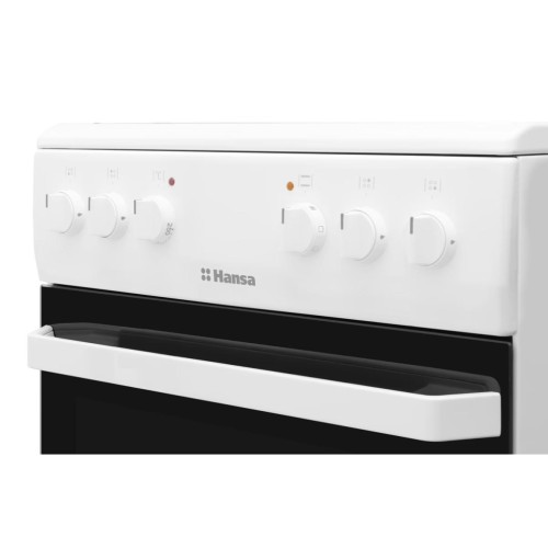 Електрична плита Hansa FCCW56069 має простору духовку об’ємом 62 л і чотири конфорки на склокерамічній поверхні. Шість режимів нагрівання дозволяють готувати з нижнім або верхнім нагрівом, у поєднанні з вентилятором чи в режимі розморожування. Максимальна температура досягає 250 °C, що робить плиту зручною для запікання, випікання та тушкування.