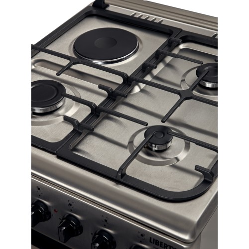 Плита LIBERTY PWE 6115 CX-F обладнана трьома газовими конфорками з потужністю 2700 Вт, 1500 Вт та 700 Вт відповідно, а також однією електроконфоркою потужністю 2000 Вт. Така комбінація дозволяє швидко та ефективно готувати різноманітні страви. Газ-контроль конфорок забезпечує додатковий рівень безпеки, автоматично вимикаючи подачу газу у разі згасання полум'я.