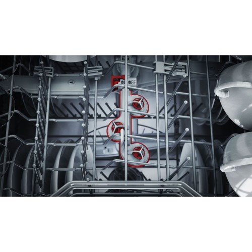 Посудомийна машина розрахована на 14 комплектів посуду, має три кошики, включно з коробом для столових приборів, підйомний верхній кошик та внутрішнє LED-підсвічування для максимальної зручності завантаження.