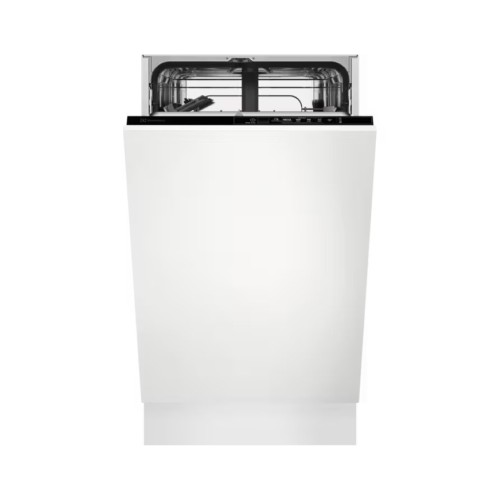 Вбудована посудомийна машина Electrolux EEA71210L з технологією AirDry завершує цикл природним підсушуванням і забезпечує до трьох разів ефективніше сушіння, ніж системи із зачиненими дверцятами. Подвійні розпилювачі подають воду в кожен куточок у верхньому й нижньому кошиках. Є швидка 30-хвилинна програма для невеликих завантажень, а шарніри PerfectFit спрощують монтаж без підрізання плінтуса. Модель оснащена функцією «Полоскання і очікування», автоматичним вимкненням, системою Thermo Efficient та інверторним двигуном.