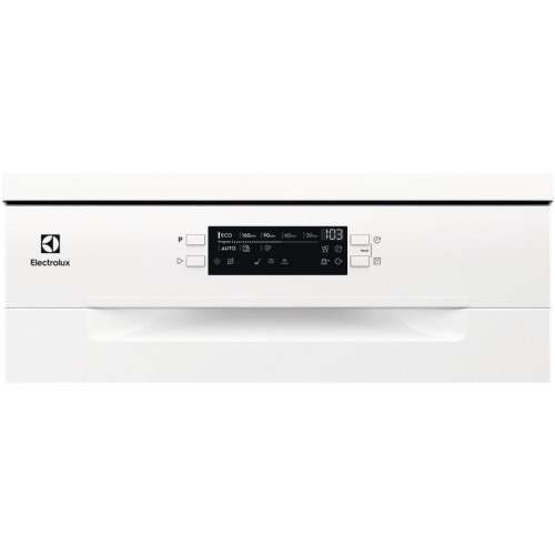Посудомийна машина Electrolux ESA47210SW з технологією AirDry для природного підсушування з автоматичним прочиненням дверцят наприкінці циклу. AutoSense підлаштовує цикл під рівень забруднення, QuickLift спрощує доступ до верхнього кошика, 30-хвилинна програма економить час, а Thermo Efficient разом з інверторним двигуном зменшують споживання електроенергії.