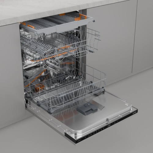 Вбудована посудомийна машина Gorenje GV16E1 з серії G400 - це ідеальне рішення для тих, хто шукає максимальну ефективність та комфорт. Ця повногабаритна модель з керуванням, що повністю вбудовується, оснащена сенсорним дисплеєм чорного кольору, який робить її керування простим та інтуїтивно зрозумілим. З місткістю до 16 комплектів посуду, Gorenje GV16E1 з легкістю впорається з миттям після великих родинних вечерь або святкових прийомів, звільняючи ваш час для більш приємних справ.