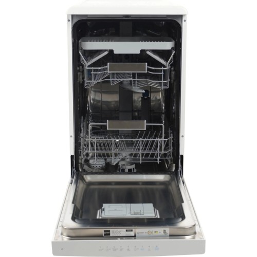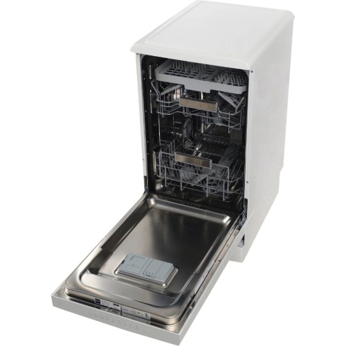 Тип: вузька; Клас енергоспоживання: A++; Клас миття: A; Управління: електронне; Витрата води за цикл: 9; Кількість комплектів посуду: 10; Рівень шуму: 44 дБ; Колір: сріблястий