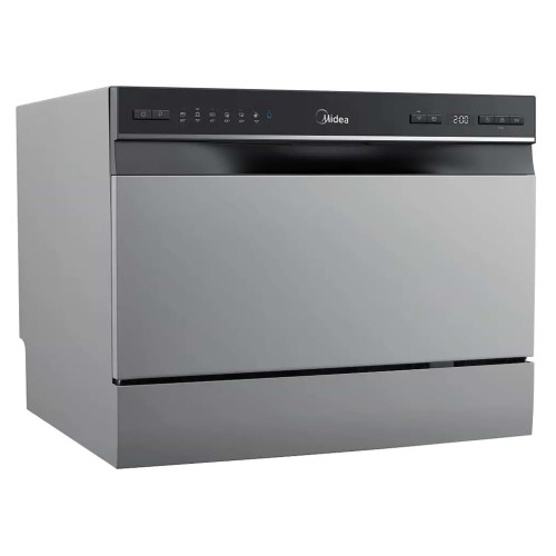 Посудомийна машина Midea MCFD55S460Wi – це настільна модель, яка чудово підходить для невеликих кухонь, орендованого житла чи сімей, де важлива економія простору. При компактних розмірах вона забезпечує повноцінне миття посуду та має місткість до 6 комплектів, чого достатньо для щоденного використання. Пристрій вирізняється економічною витратою води – лише 6,5 літра за цикл, що робить його вигідним у побуті.