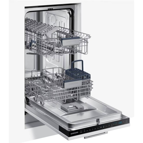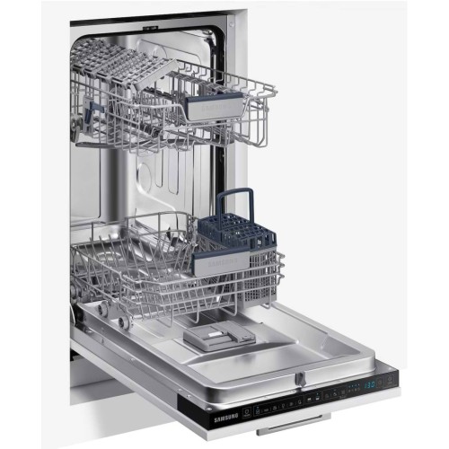 Вбудована посудомийна машина Samsung DW50R4060BB/UA — це вузька (45 см) модель, яка стане відмінним вибором для невеликих кухонь або родин з невеликою кількістю посуду. Вона вміщує до 9 комплектів, при цьому працює досить тихо — лише 44 дБ, що дозволяє користуватися нею навіть у вечірній час.