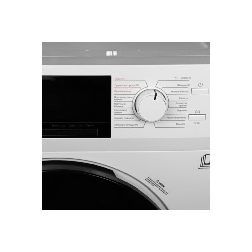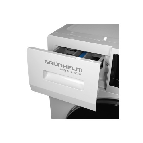 Прально-сушильна машина GWDT-FF10614D2W Grunhelmфронтально завантажується до 10 кг для прання і 6 кг сушка.Білий корпус, чорна панель, чорний люк.